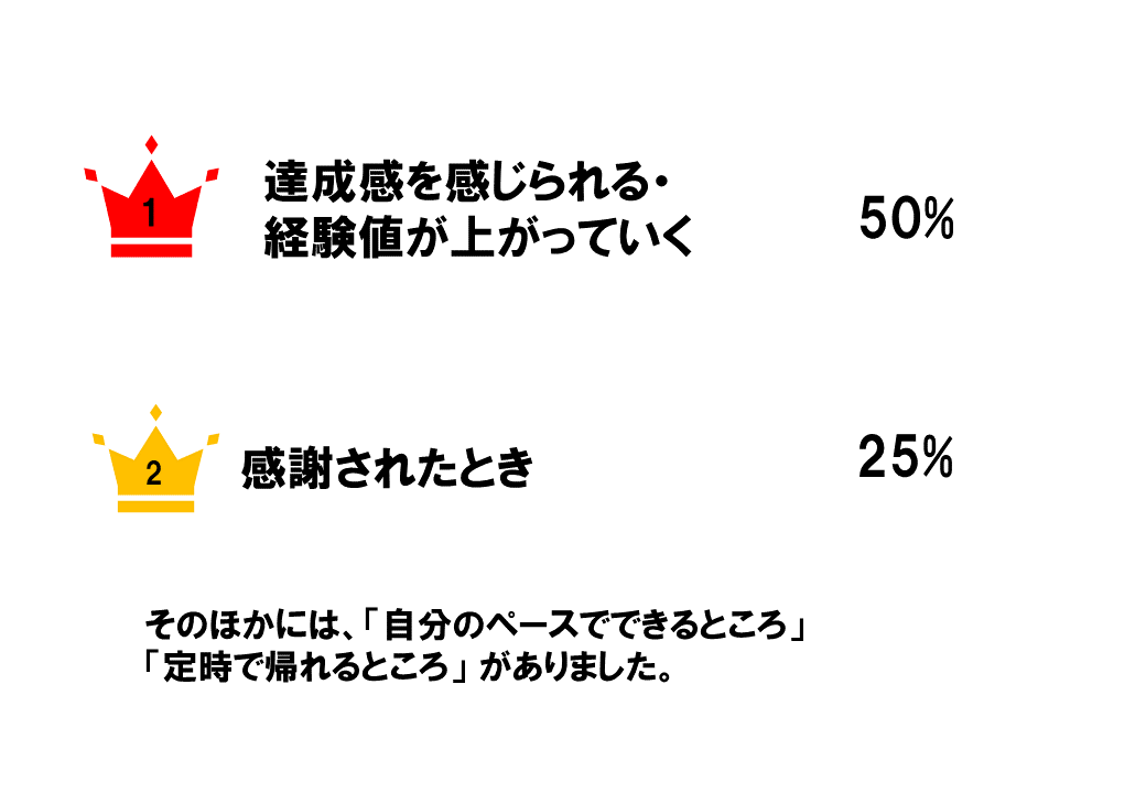 仕事を任されるようになり、自分で判断できることが増えました!お客様の要望に応えられ、感謝された時はまた頑張ろうというきもちになります。